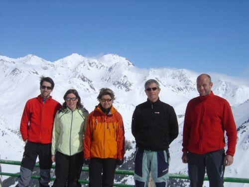 Meriadeg, Karine, Valérie, Jean et Arnaud sur la terrasse du Funiculaire (photographe JM)