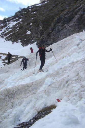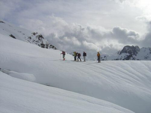 Le groupe progresse maintenant sur de belles pentes vierges