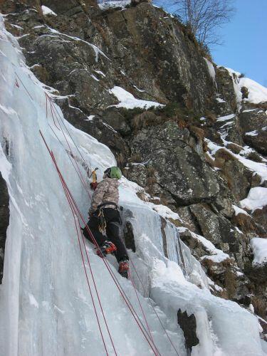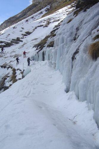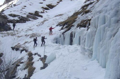 Une imposante coulée à traverser. Attention à la glace !