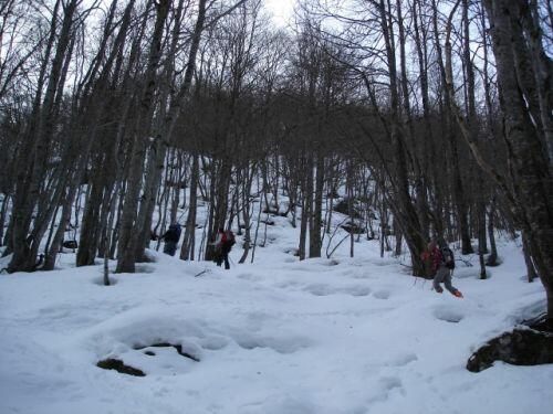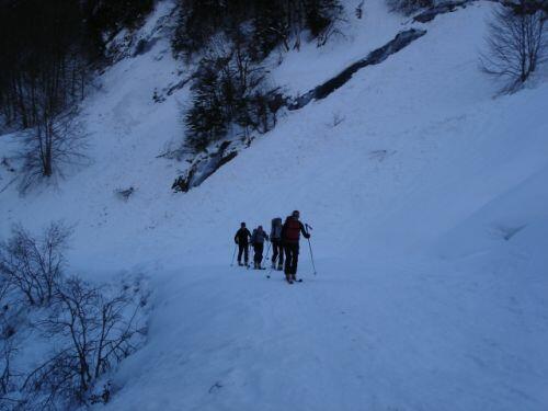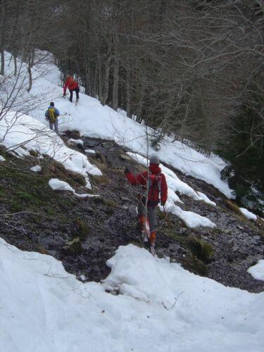 Une neige humide, un chemin étroit, une pente prononcée : une descente difficile